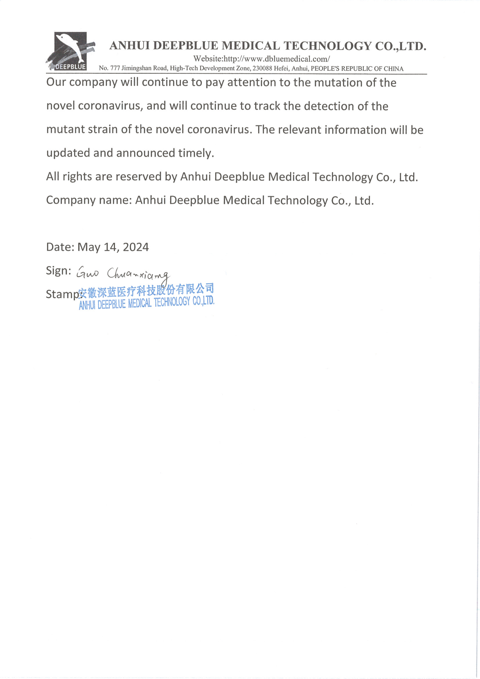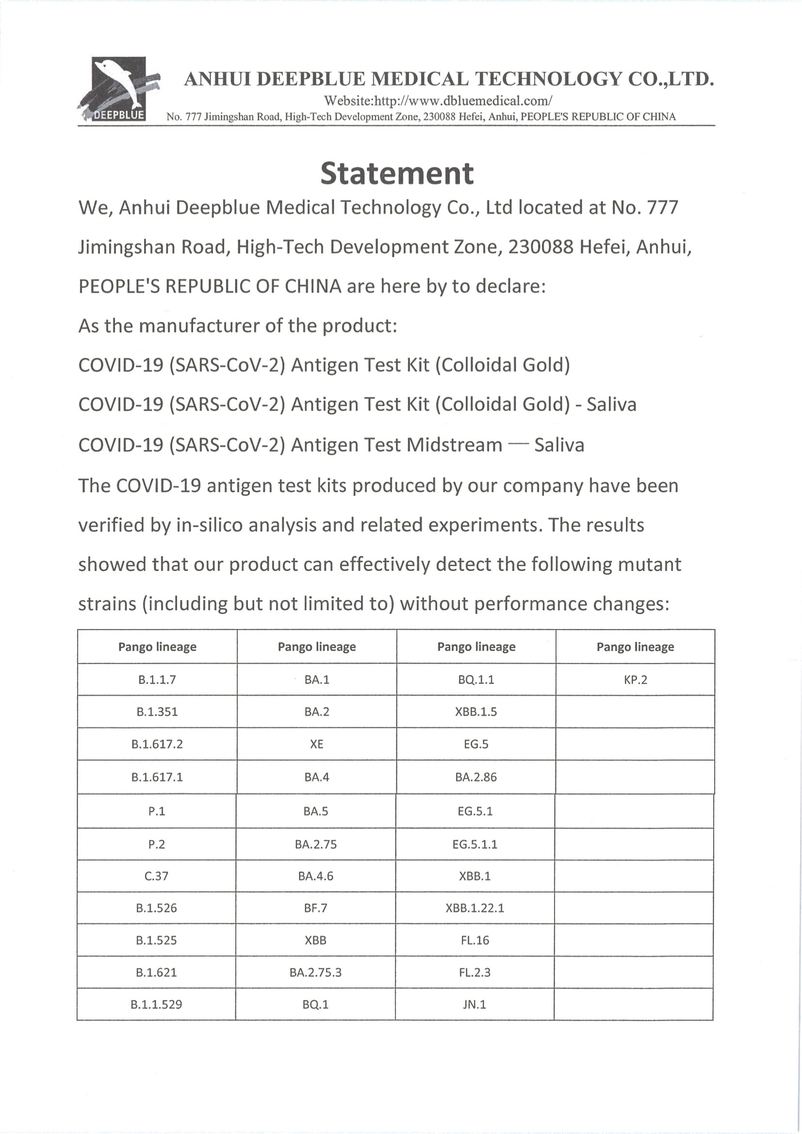 聲明概述:深藍醫(yī)療現(xiàn)有新型冠狀病毒(2019-nCoV)抗原檢測試劑盒系列產品可有效檢出以下新冠變異毒株(包括但不局限于),并且產品性能不會有變化。