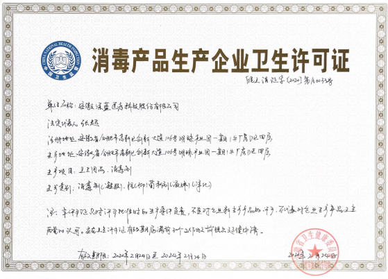 2020年1月份,全國新型冠狀病毒感染的肺炎人數(shù)呈快速上升趨勢(shì),形勢(shì)嚴(yán)峻,疫情防控已成為舉國上下重中之重的第一要?jiǎng)?wù)。深藍(lán)醫(yī)療雖然不是疫情應(yīng)急防控產(chǎn)品定點(diǎn)生產(chǎn)企業(yè),但深知企業(yè)的責(zé)任所在,時(shí)刻關(guān)注疫情發(fā)展動(dòng)態(tài)。應(yīng)政府通知要求,為有效支撐新型冠狀病毒感染肺炎疫情防護(hù)工作,促進(jìn)疫情防護(hù)重點(diǎn)物資生產(chǎn)及產(chǎn)業(yè)鏈企業(yè)盡快形成有效產(chǎn)能,深藍(lán)醫(yī)療迅速組織員工進(jìn)行復(fù)產(chǎn)復(fù)工助力疫情防控工作,企業(yè)通過合肥市衛(wèi)健委應(yīng)急審批通道,申請(qǐng)辦理消毒產(chǎn)品生產(chǎn)企業(yè)衛(wèi)生許可證。2月18日,合肥市衛(wèi)生監(jiān)督所一行審核人員在張超董事長的陪同下,對(duì)生產(chǎn)現(xiàn)場(chǎng)進(jìn)行審核驗(yàn)收。