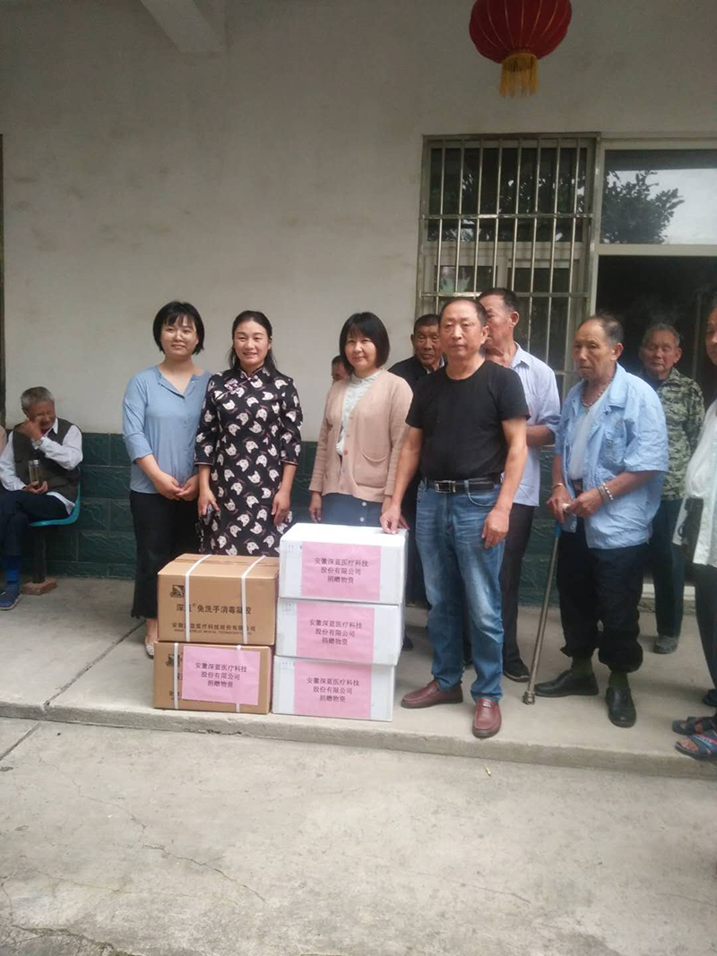 2020年9月,安徽深藍(lán)醫(yī)療科技股份有限公司公益行來到嚴(yán)店鄉(xiāng)特困供養(yǎng)中心、安徽省紅十字博愛學(xué)校、黃山金川中學(xué)及太湖沙河中學(xué),并捐贈價值4萬元的免洗手消毒凝膠用于疫情防控。