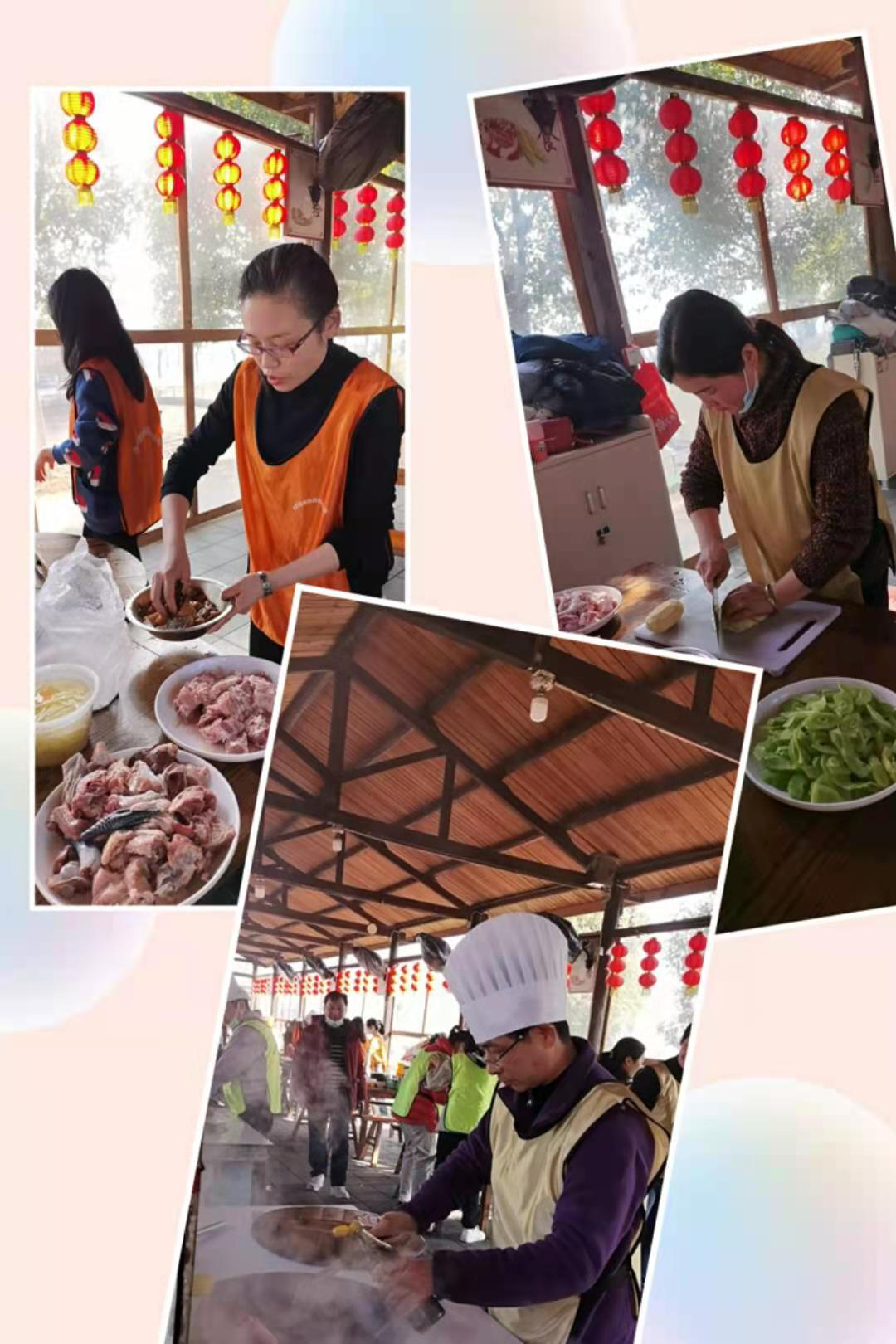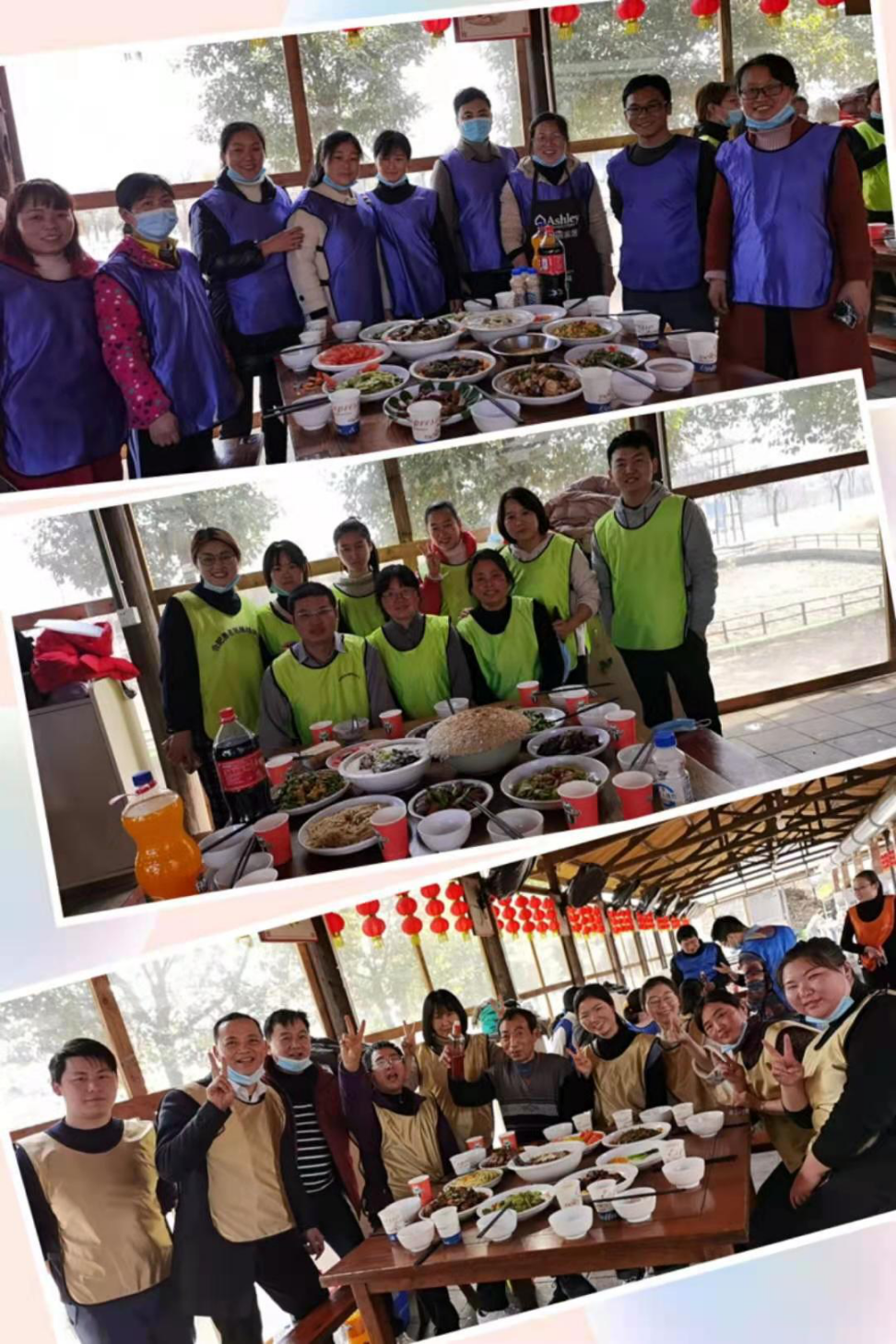 2月7日,深藍(lán)全體員工前往位于肥東的藍(lán)山灣木藝小鎮(zhèn),通過現(xiàn)場抽簽的方式將員工分成七組進(jìn)行大鍋菜廚藝比拼,每組人員協(xié)力合作,有人洗菜、有人切菜、有人燒火、廚藝好的帶上大廚帽掌勺,大家各司其責(zé),各組人員大展拳腳,廚房現(xiàn)場熱鬧非凡。經(jīng)過兩個小時(shí)的準(zhǔn)備,大家一起品嘗美味,共享勞動成果。