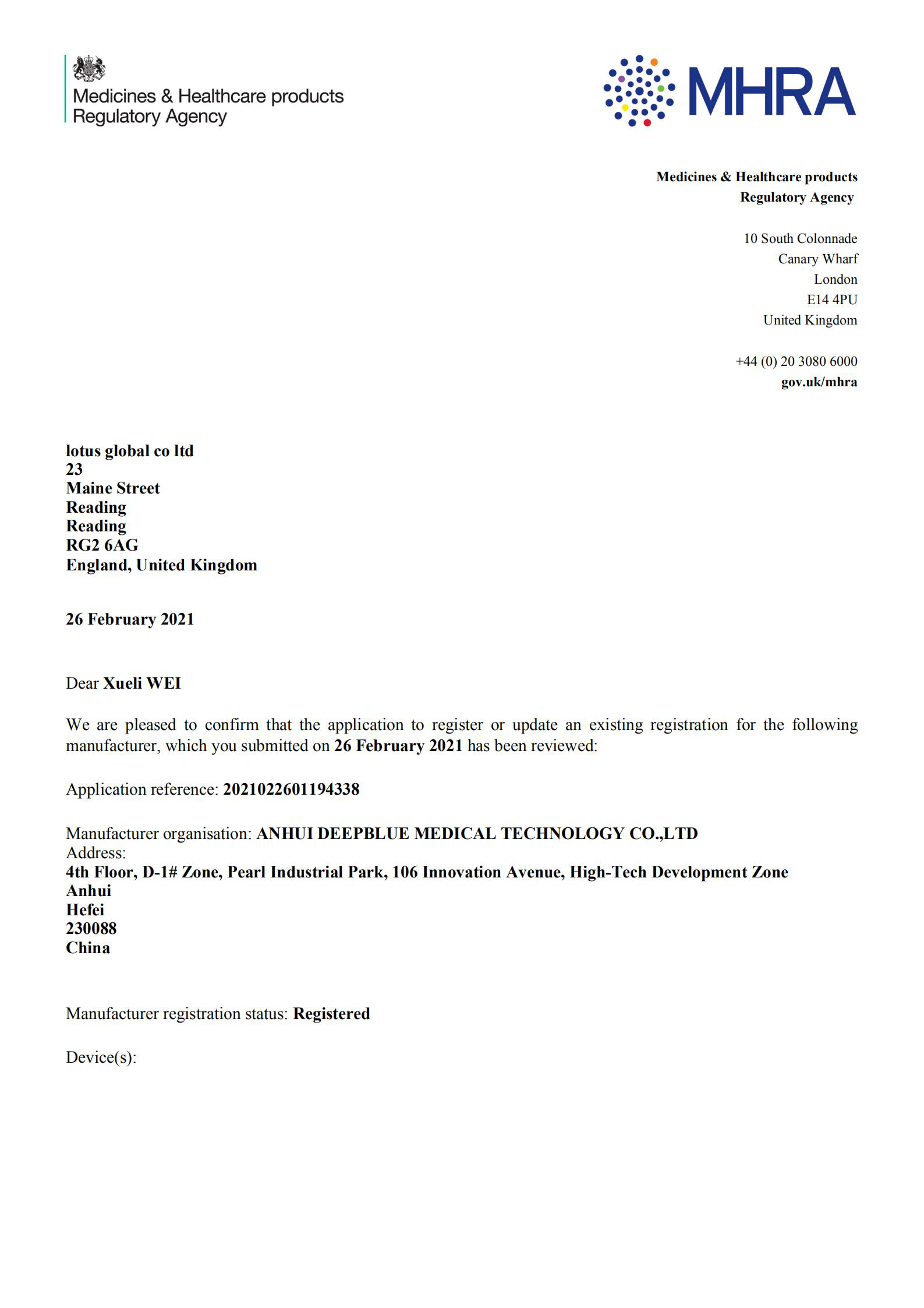 英國抗原注冊證