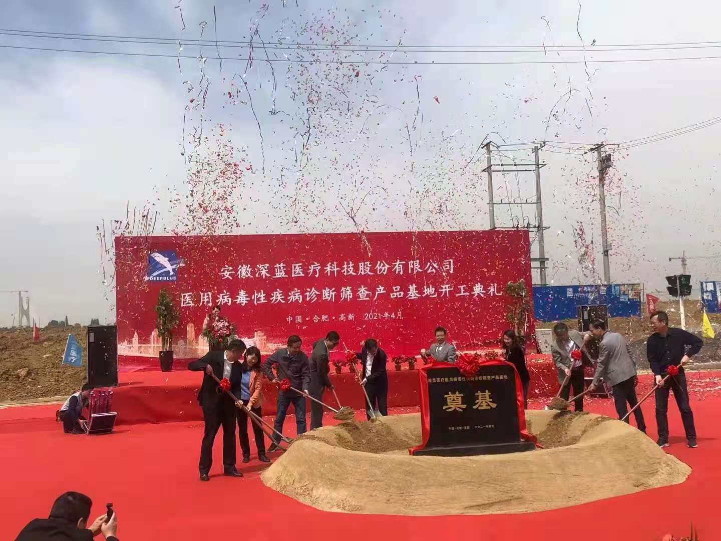 鑼鼓喧天,禮炮齊鳴,培土禮成!4月18日上午,深藍醫(yī)療病毒性疾病診斷篩查類產(chǎn)品基地項目在合肥市高新區(qū)舉行了隆重的開工奠基儀式,合肥高新區(qū)黨工委委員、管委會副主任劉登銀、合肥高新區(qū)投資促進局局長徐斌、合肥高新區(qū)建設(shè)發(fā)展局局長劉群及各有關(guān)部門的負責(zé)同志出席奠基儀式。