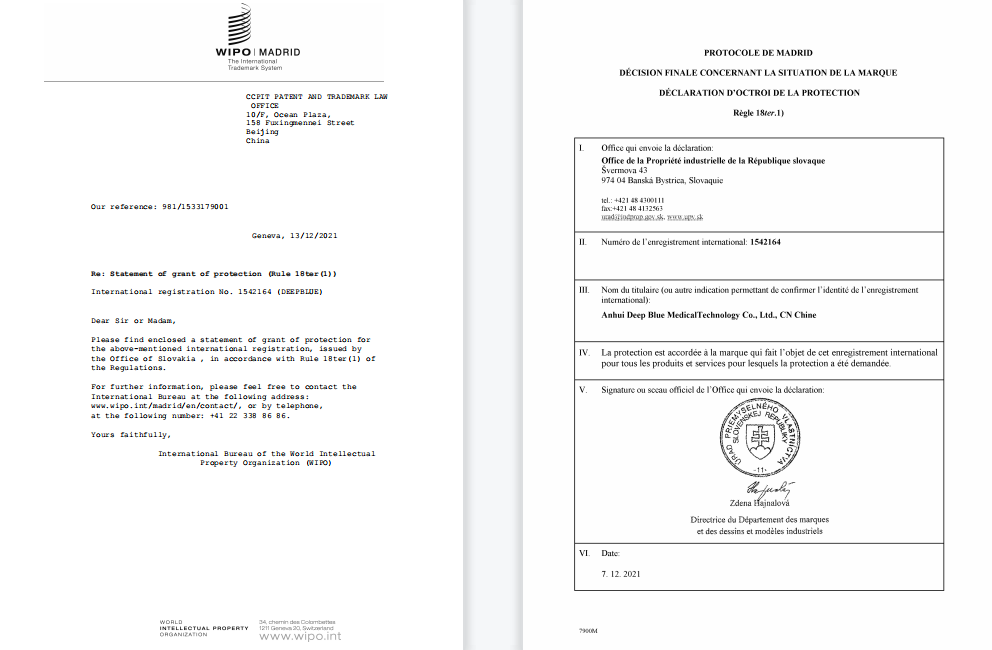 捷報頻傳|“DEEPBLUE”商標成功通過斯洛伐克注冊核準