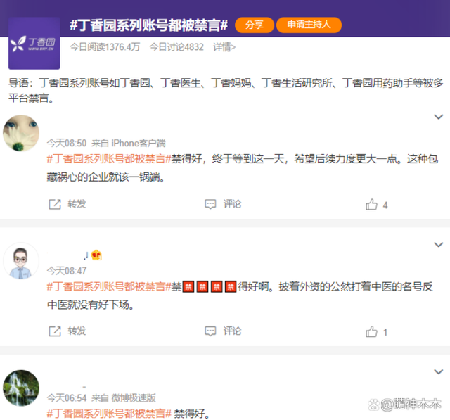 目前,針對(duì)丁香園被禁言一事,網(wǎng)友眾說紛紜褒貶不一。有為其喊冤抱不平的,也有認(rèn)為丁香園在宣傳醫(yī)療知識(shí)的時(shí)候會(huì)“夾帶私貨,蹭熱度,虛假科普”,早該被治理一下。還有人質(zhì)疑丁香園背后有美資背景...