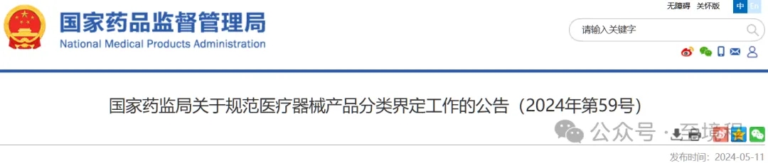 【3】國家藥監(jiān)局關于規(guī)范醫(yī)療器械產(chǎn)品分類界定工作的公告(2024年第59號)