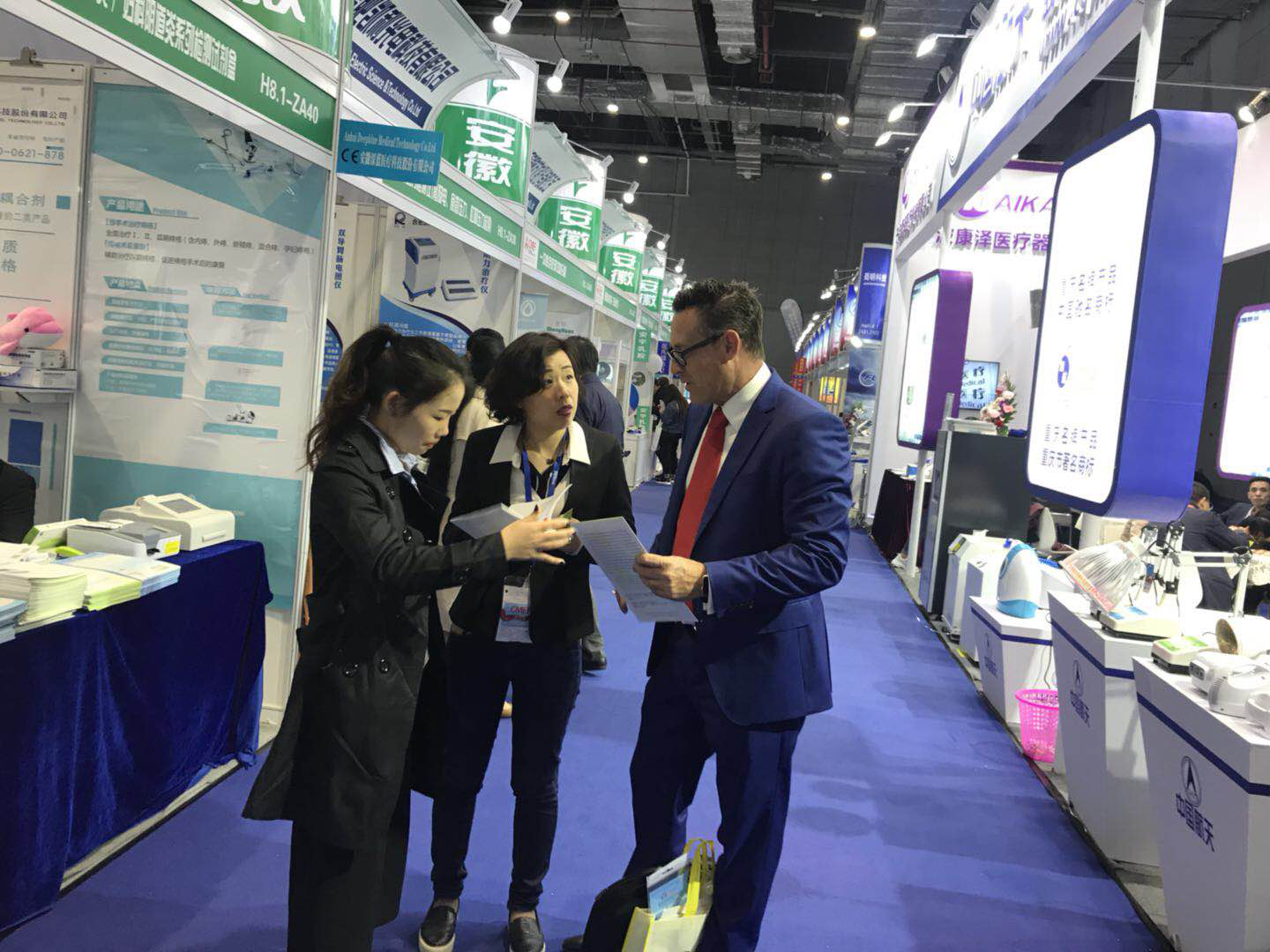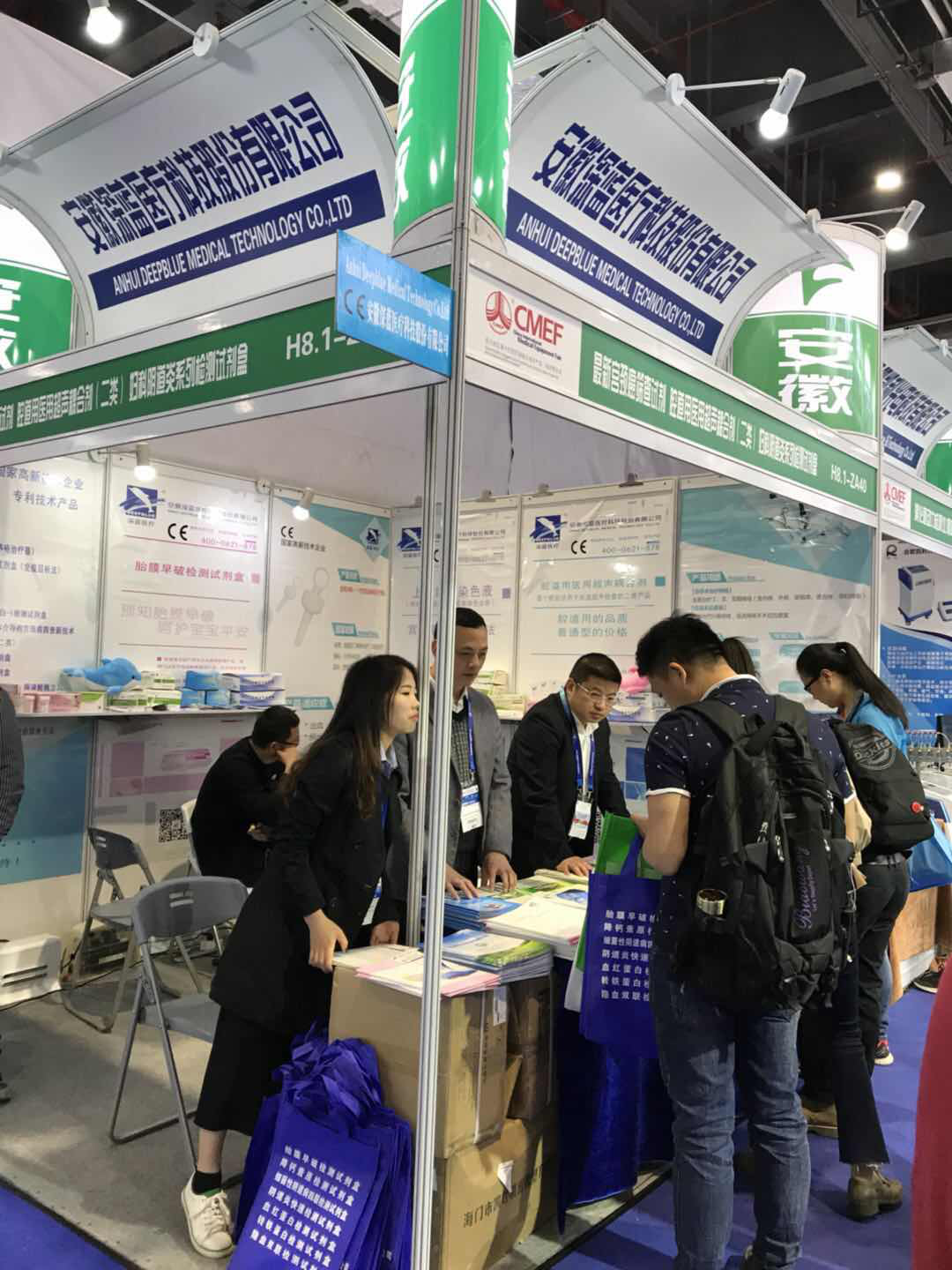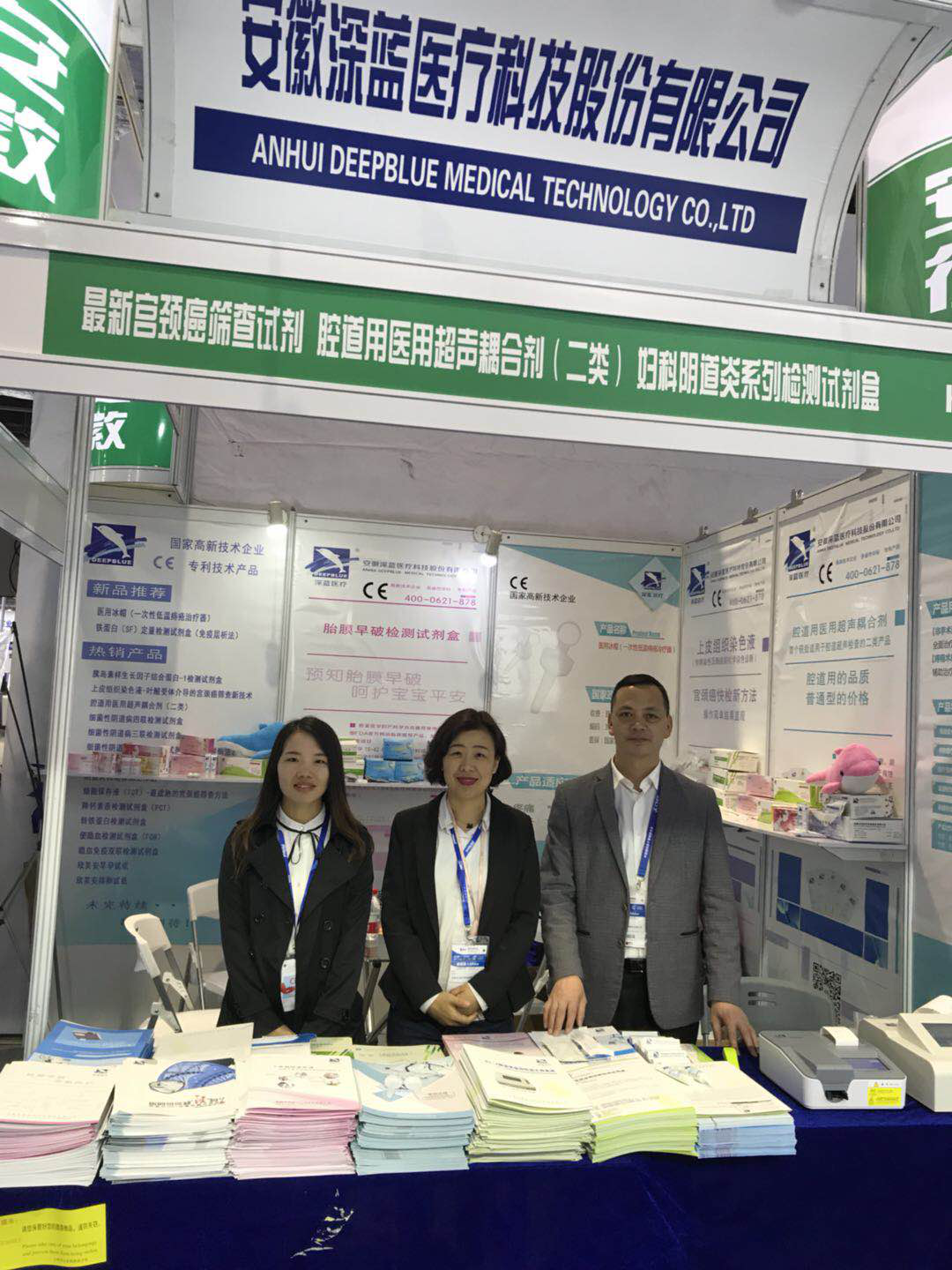本次展會(huì)安徽深藍(lán)醫(yī)療科技股份有限公司總經(jīng)理陳奉玲女士攜公司業(yè)務(wù)部和外貿(mào)部經(jīng)理參展,向廣大廠商、業(yè)內(nèi)朋友展示了公司自主研發(fā)的多種體外診斷試劑新品。其中重點(diǎn)介紹了最新的醫(yī)用冰帽和鐵蛋白檢測(cè)試劑盒。