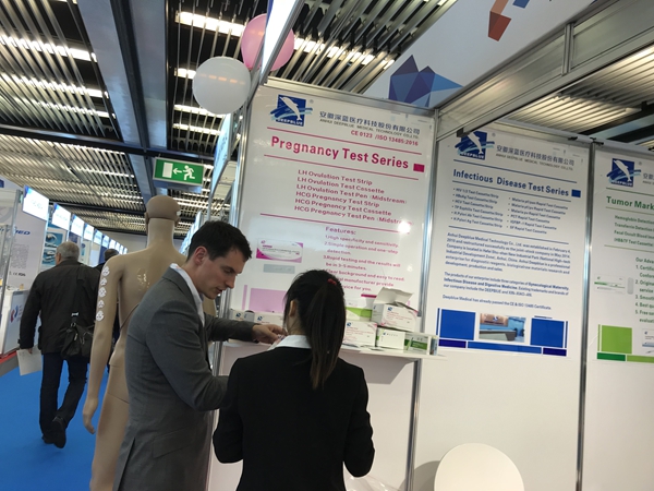??2018年11月12日至15日,2018年德國杜塞爾多夫國際醫(yī)療器械及設備展覽會(MEDICA2018)順利舉行,來自世界76個國家的4200家醫(yī)療公司參加了本次展會。安徽深藍醫(yī)療科技股份有限公司外貿部攜公司CE認證產品首次亮相,即得到了各國客戶的青睞,前來參觀和咨詢的各國采購商和專業(yè)觀眾絡繹不絕。在為期四天的展覽會上,深藍醫(yī)療展位吸引了眾多外商駐足,我司外貿人員始終以飽滿的熱情、耐心地與各國客戶進行溝通交流,共接待各國客戶近百人,本次展會不僅在國際舞臺上宣傳了公司產品,也加快了公司產品與國際的接軌。