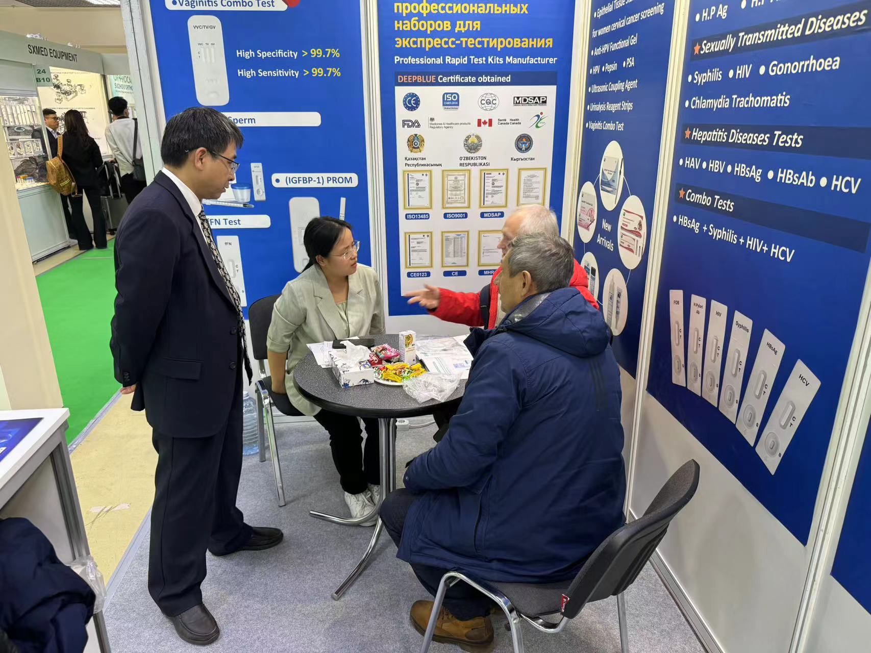 展會期間,深藍醫(yī)療以高質(zhì)量的產(chǎn)品、優(yōu)質(zhì)的服務吸引了眾多目光。多維度、多領域的體外診斷試劑羅列整齊,展現(xiàn)了公司在IVD領域的卓越實力,吸引了醫(yī)療專業(yè)人士、行業(yè)專家和潛在客戶的目光,紛紛駐足了解。