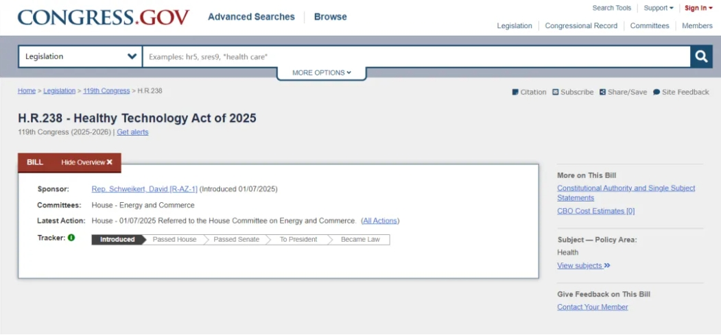 但據(jù)外媒報(bào)道,日前,美國眾議員David Schweikert提出了一項(xiàng)法案--《2025 年健康技術(shù)法案》(HR 238),將更新《聯(lián)邦食品、藥品和化妝品法案》,并將從業(yè)者的定義擴(kuò)展至包括人工智能和機(jī)器學(xué)習(xí)技術(shù)。該法案于上個月首次在國會提出,目前已提交給眾議院能源與商業(yè)委員會。外媒評論稱,此舉或?qū)⒏淖冡t(yī)療實(shí)踐。