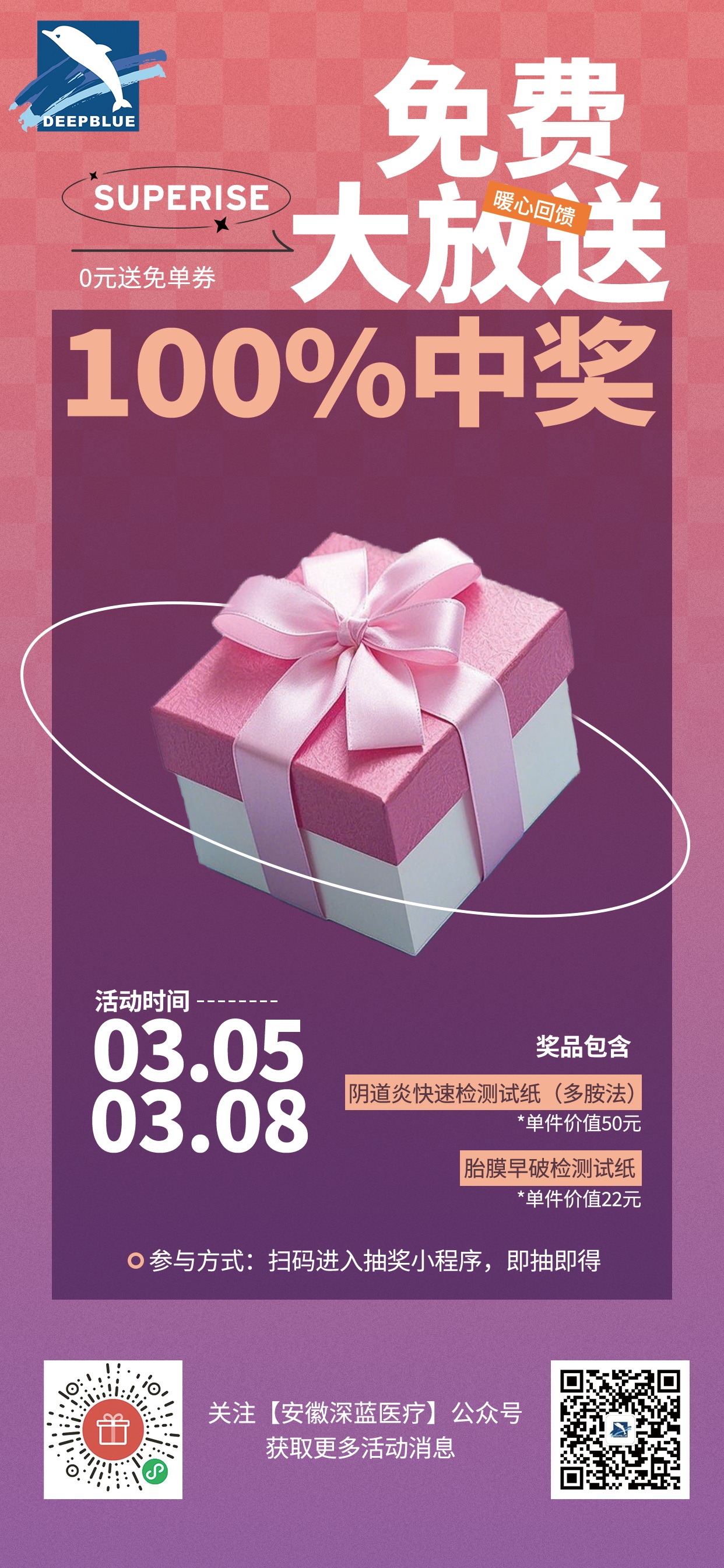 為了讓更多女性受益,值此婦女節(jié)之際,深藍(lán)醫(yī)療抽獎贈送活動再度來襲!依舊是100%中獎率,數(shù)量不多,先到先得!
