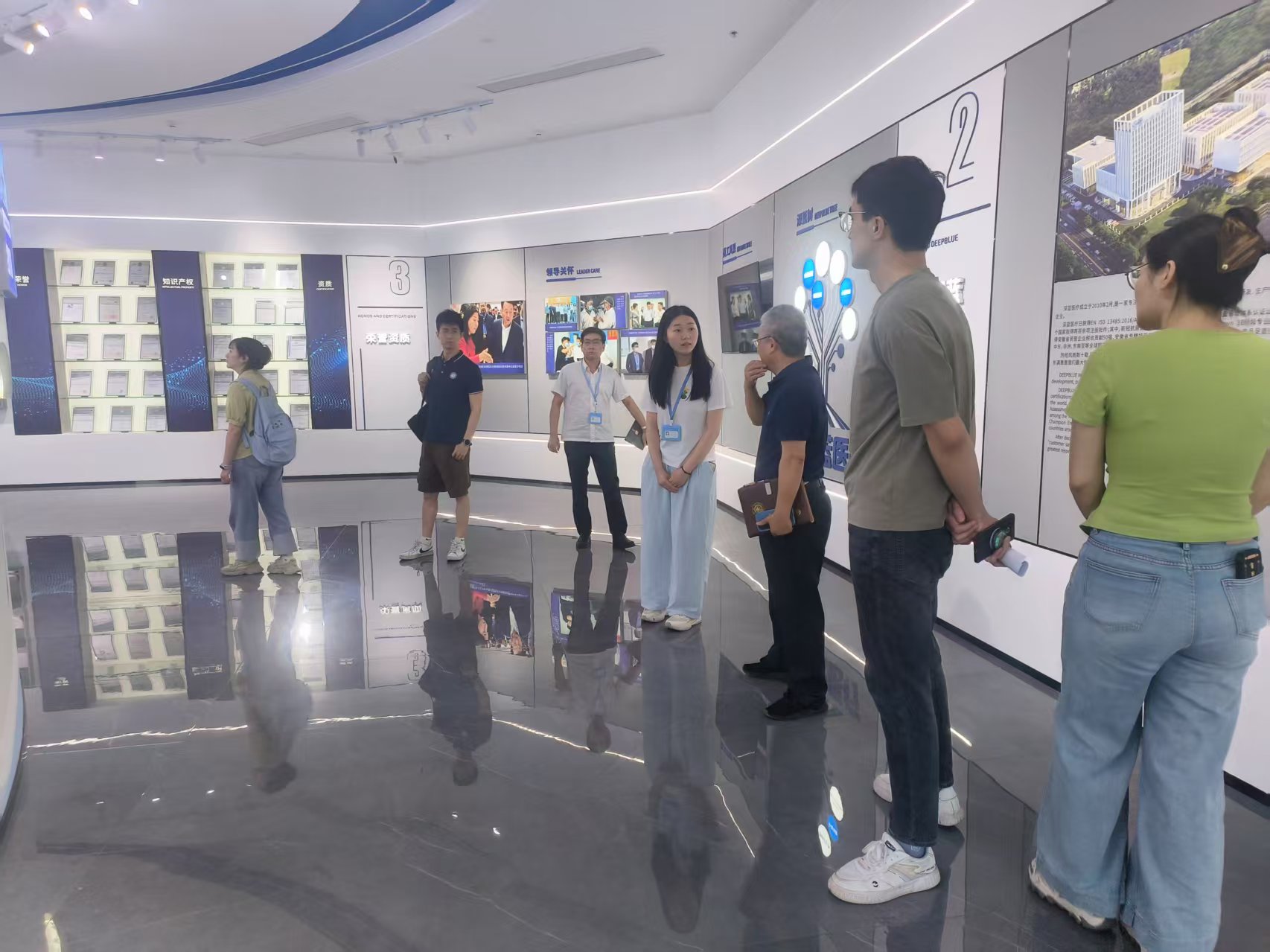 在深藍醫(yī)療相關(guān)人員的陪同下,上交大研究院古院長一行參觀了深藍醫(yī)療的研發(fā)中心、質(zhì)量檢驗中心及生產(chǎn)車間,詳細了解了深藍醫(yī)療在體外診斷試劑領(lǐng)域的研發(fā)實力、嚴(yán)格的質(zhì)量管理體系以及規(guī)模化、標(biāo)準(zhǔn)化的生產(chǎn)制造能力,對深藍醫(yī)療先進的生產(chǎn)設(shè)備、嚴(yán)謹?shù)墓に嚵鞒毯蛯I(yè)的團隊給予了高度評價。