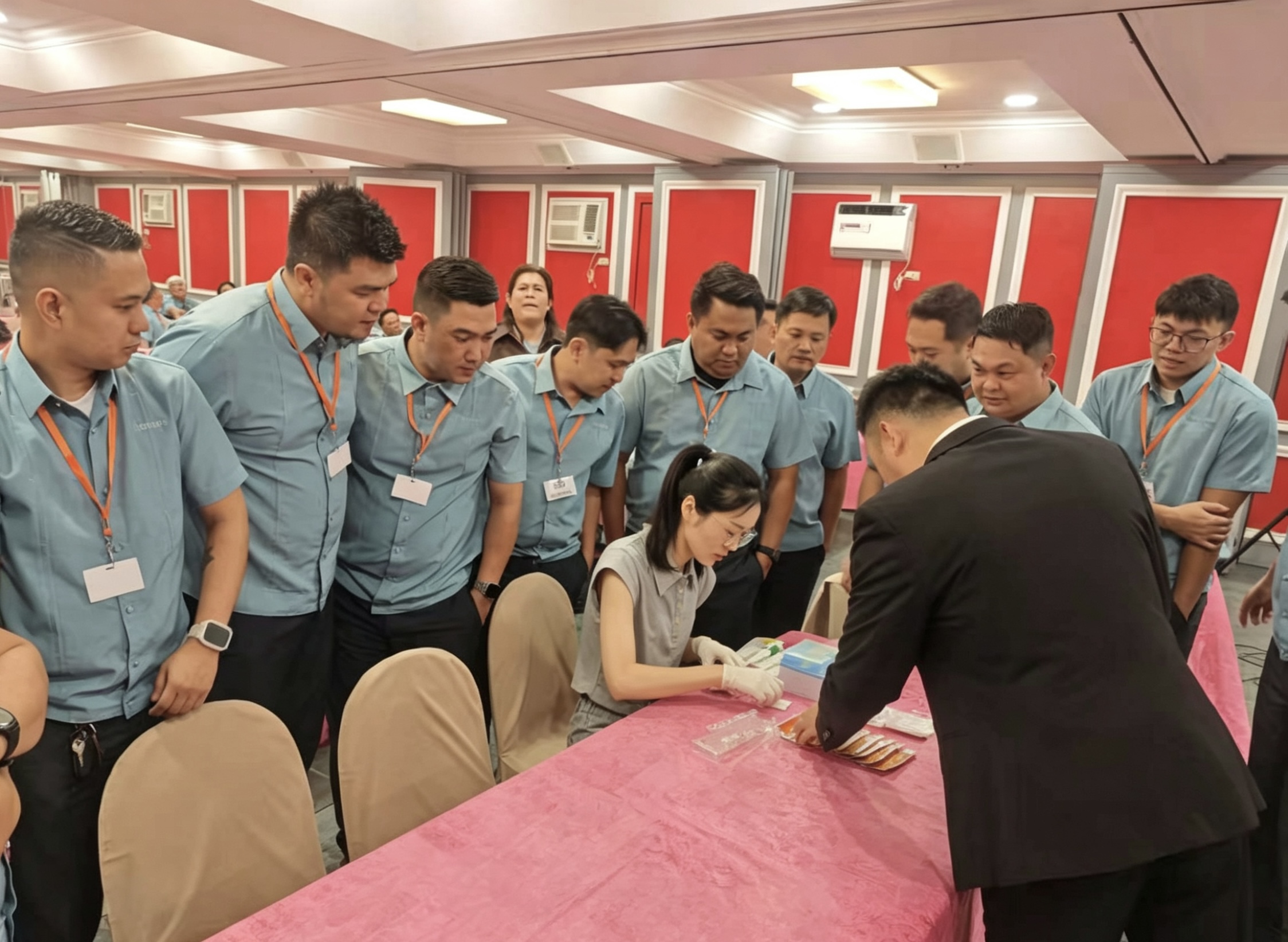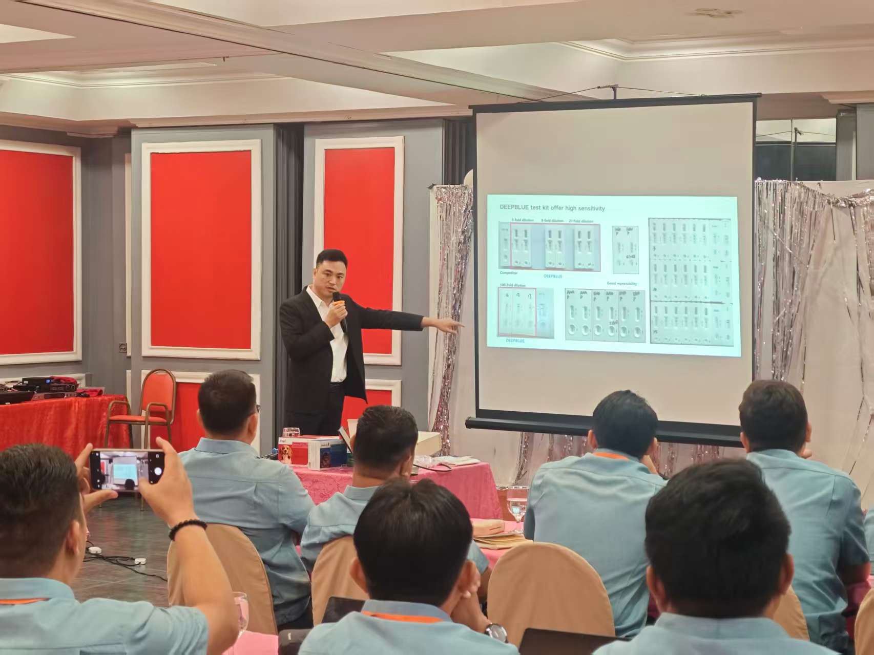 在培訓交流活動中,國際部經(jīng)理李俊率先登臺,圍繞深藍醫(yī)療自主研發(fā)的系列檢測產(chǎn)品進行了全面而生動的介紹。從研發(fā)背景到技術參數(shù),從操作便捷性到市場應用前景,李經(jīng)理的講解邏輯清晰、重點突出,讓客戶對深藍醫(yī)療的產(chǎn)品有了深刻而系統(tǒng)的認知。理論培訓之后,技術研發(fā)員余倩現(xiàn)場進行了專業(yè)的檢測演示。她手法嫻熟、操作嚴謹,每一個步驟都精準到位。現(xiàn)場檢測結果清晰、可靠,產(chǎn)品性能在客戶眼前得到了最直觀的驗證,贏得了客戶的高度認可與一致好評。